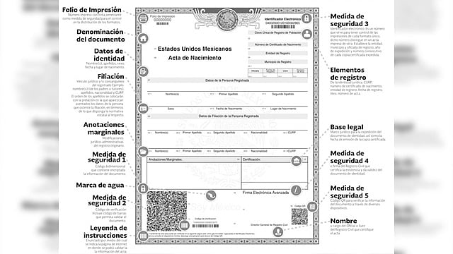 Las actas de nacimiento se obtendrán a través del portal www.gob.mx/actas y las autoridades las podrán validar y obtener una constancia de verificación en el mismo sitio web, con lo cual la seguridad del documento se encuentra en su contenido y no en las hojas.