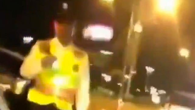 En el clip de 11 segundos de duración se observa una camioneta de la policía con un elemento que da el paso a los vehículos.