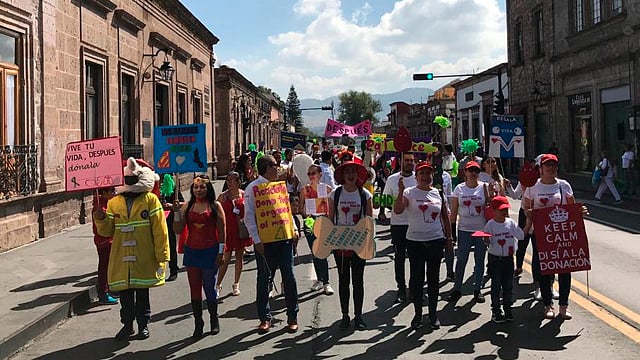 Morelia, Michoacán (MiMorelia.com).- Con consignas como "vive tu vida y después dónala", un grupo de familiares de donadores y receptores de órganos vestidos de corazones, tejidos, huesos y hasta de superhéroes, desfilaron por la avenida Madero hasta la Plaza de Armas para visibilizar este tema.