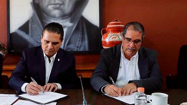Morelia, Michoacán (Boletín).- En un hecho histórico y en tiempo récord, el Gobierno del Estado y el Sindicato de Trabajadores al Servicio del Poder Ejecutivo (STASPE), lograron un acuerdo por el incremento salarial a la base laboral, en convenio que signaron este miércoles el gobernador Silvano Aureoles Conejo y el secretario general de dicho organismo, Antonio Ferreyra Piñón.