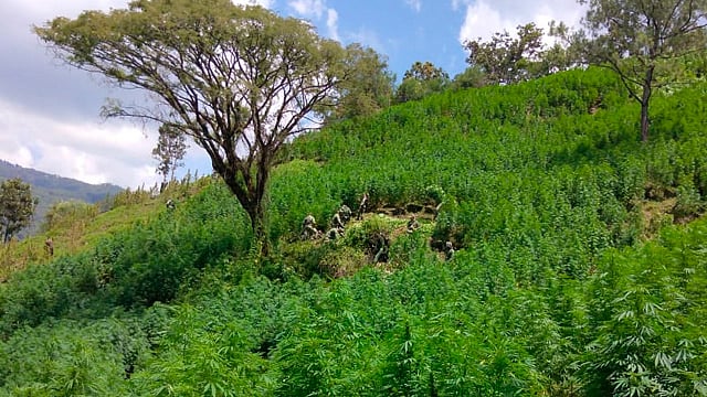 Michoacán (MiMorelia.com/Boletín).- Con apoyo de elementos de la Guardia Nacional y personal militar pertenecientes al 12/o. Batallón de Infantería fue localizado un plantío de marihuana.