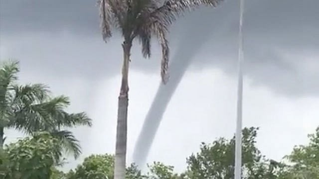 En videos se puede ver como el agua del mar se mueve mientras a la distancia se forma un tornado conocido como tromba marina.