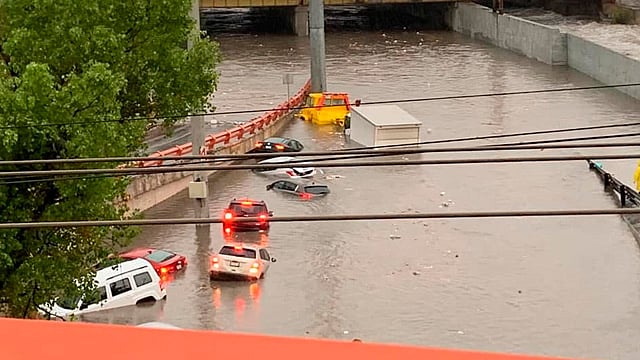 El la capital neoleonesa, se inundó por completo el paso a desnivel en la avenida Gonzalitos y Fleteros.