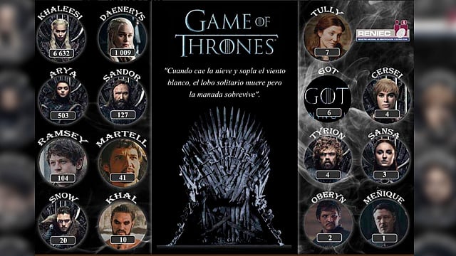 Además, a través de su cuenta oficial de Twitter montó una imagen alusiva a la serie con la lista de los nombres que hay registrados en el país derivados de GOT.