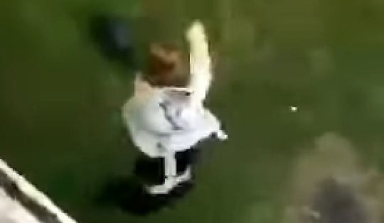 La mujer cayó brutalmente contra el césped, instante en el que lanza un grito de dolor y la grabación concluye.