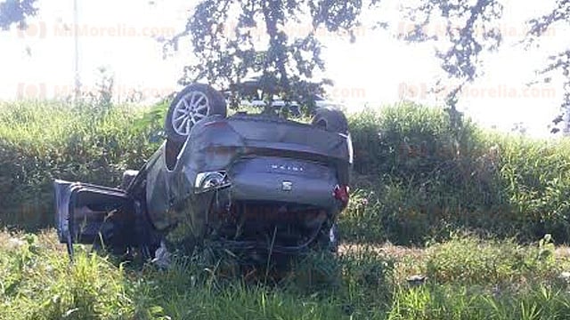 Cojumatlán de Regules, Michoacán.- (MiMorelia.com/RED 113).- El conductor de un vehículo resultó con lesiones leves luego de volcar su unidad de forma aparatosa. El ocupante salió disparado de su unidad.
