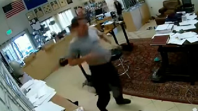 El sujeto grita de dolor y corre a sacar el arma; según el sitio The Truth About Guns, la bala le perforó la ingle al entrar y salir, lo que le provocó un orificio de salida.