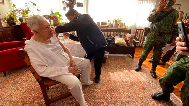 López Tarso se une a la lista de famosos ya vacunados como Verónica Castro, Enrique Guzmán, Pedro Sola, Silvia Pinal e Irma Serrano entre otros.