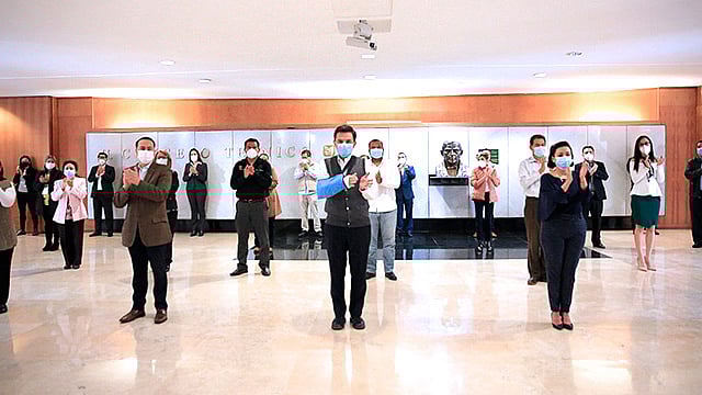 Ciudad de México (MiMorelia.com).- Trabajadores del Instituto Mexicano del Seguro Social (IMSS), encabezados por el director general Zoé Robledo, guardaron un minuto de silencio en memoria de las personas que han fallecido por la epidemia de Covid-19 y reconocieron con aplausos el trabajo que desempeñan más de 16 mil profesionales de salud del Seguro Social en todo el país.