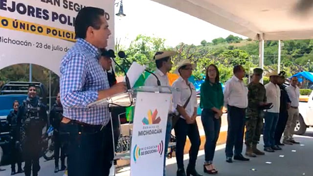 "Tuzantla se suma a los municipios que tendrán completo su estado de fuerza, el número de policía de acuerdo al Sistema Nacional, con la formación que se requiere, con el equipo y con unidades para que no naveguen".