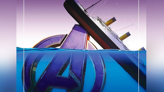 Con una imagen en la que muestra al Titanic hundiéndose por un "iceberg" en forma del logo de Avengers, acompañado del siguiente texto: