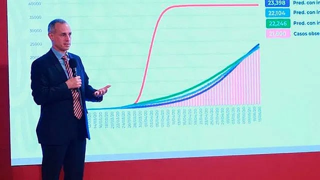 "México ha tenido una duplicación inicial de casos cada dos días, solamente los cuatro o cinco días que alcanzamos los primeros 100 casos, y posteriormente tuvimos una inclinación muy drástica de la curva y empezamos a tener duplicaciones cada cinco días y al llegar al día 40, tuvimos un cambio y ahora hay duplicaciones cada 6 días, es decir se está haciendo cada vez más lenta la epidemia, hemos aplanado curva", señaló.