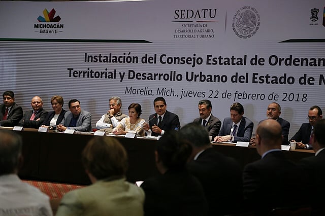 Morelia, Michoacán (MiMorelia.com).- A evitar construir asentamientos urbanos en zonas de riesgo por desastres naturales, llamó el gobernador del estado, Silvano Aureoles Conejo, durante la instalación del Consejo Estatal de Ordenamiento Territorial y Desarrollo Urbano del Estado de Michoacán.