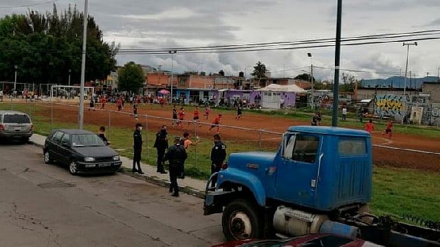 Morelia, Michoacán (MiMorelia.com).- Elementos de Seguridad Pública del estado (SSP) acudieron a una cancha de futbol de esta capital para disolver el partido que se iba a jugar y así evitar contagios de Covid-19.