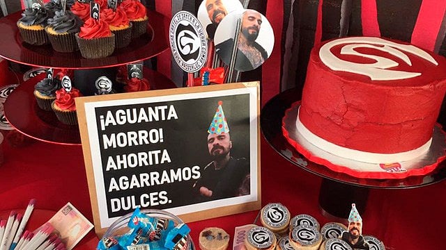 A través de Facebook, una mujer publicó las imágenes de parte del festejo en donde se ve la mesa de dulces decorada con el rostro del cantante así como una frase con palabras que suele usar "Aguata morro, ahorita agarramos dulces".