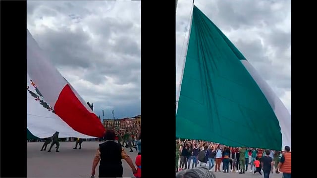 A través de redes sociales se ha hecho viral el video en el que después de un acto cívico en el Zócalo Capitalino, los militares procedían a retirar la Bandera del asta, sin embargo las rachas de viente impedían lograrlo.