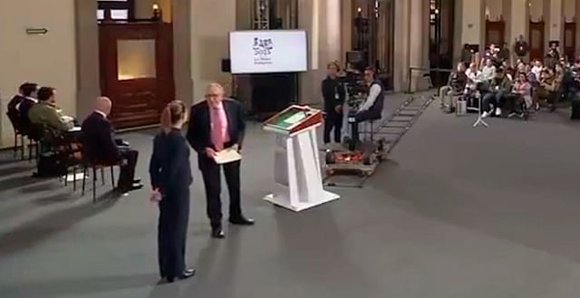 La escena fue transmitida en vivo desde Palacio Nacional. Mientras el funcionario se preparaba para tomar la palabra, Sheinbaum se inclinó discretamente hacia él y le dijo en voz baja: "No digas los municipios". A pesar de la advertencia, el diálogo continuó por unos segundos, pero de forma inesperada, el audio del micrófono fue silenciado, impidiendo escuchar el contenido posterior de la conversación.