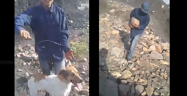 En el video se ve a los chicos que entre risas lanzan a la perrita al pozo; luego uno de ellos va por una piedra grande y la avienta donde está el can.