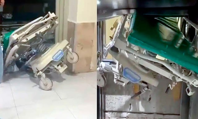 Al momento del accidente se encontraban dos camilleros, mientras que, una camilla vacía quedó prensada por la mitad afuera del elevador, afortunadamente no hubo heridos en el incidente.