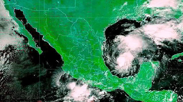 Se mantiene el pronóstico de lluvias puntuales intensas en regiones de Puebla y Veracruz; muy fuertes en zonas de Chiapas, Oaxaca y Tabasco, y fuertes en Campeche y Tamaulipas.