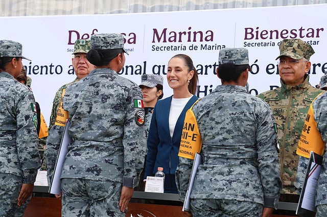 Destacó que el trabajo de las Fuerzas Armadas, las y los Servidores de la Nación, así como funcionarios de las diferentes dependencias del Gobierno de México, confirma que el servicio a la nación es un honor que se ejerce con humildad y valentía.
