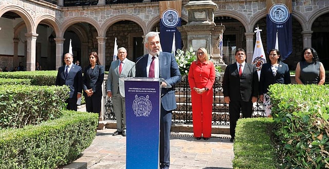 El gobernador resaltó en su mensaje que hoy la Universidad Michoacana lleva con orgullo el nombre de Hidalgo, convirtiéndose en heredera de su espíritu donde no solo se forman profesionistas, sino mujeres y hombres activos y conscientes de su responsabilidad histórica.
