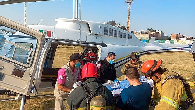 Sahuayo-Charo, Michoacán (MiMorelia.com).- Derivado de un reporte a la línea de emergencias, los elementos de la Dirección de Servicios Aéreos de la Secretaría de Seguridad Pública (SSP), trasladaron a un hombre, quien requería de atención médica urgente tras sufrir quemaduras de primer y segundo grado.
