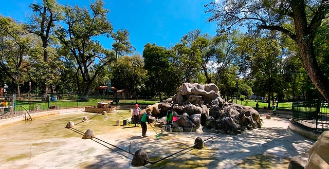 Morelia, Michoacán (MiMorelia.com).- Personal del área de Parques y Jardines del Ayuntamiento de Morelia lleva a cabo trabajos de limpieza y mantenimiento en la Fuente de “Los Patos”, con el propósito de conservar este espacio en óptimas condiciones y salvaguardar el bienestar de los patos que habitan en el lugar.