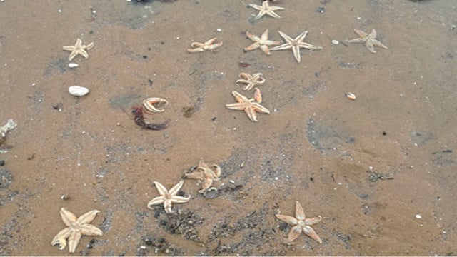Reino Unido (MiMorelia.com/Redacción).- Miles de estrellas de mar fueron encontradas muertas en una playa de Kent, al sur de Inglaterra, el pasado sábado.