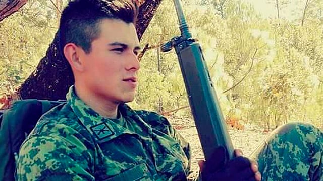 En la foto que fue subida a la página Fuerzas Armadas De México se aprecia a un hombre con un arma larga dos emojis con la seña de saludos.