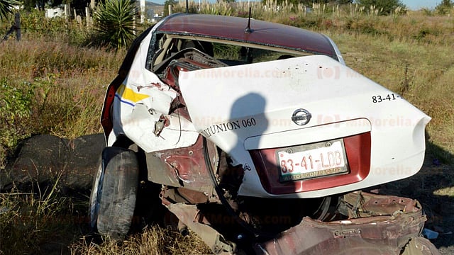 El suceso fue en la carretera Morelia-Recinto Ferial, a unos metros de la desviación hacia Tres Marías, en este municipio. Los automotores siniestrados fueron un taxi Nissan Sentra, con placas de circulación 8341-LDB y un Audi Q5, de color negro, con matrícula PRC-4600.