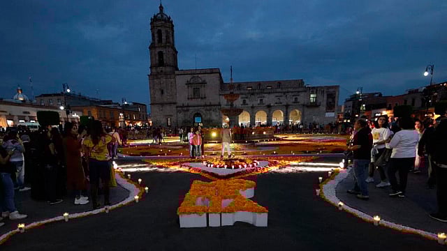 Posteriormente, el alcalde se desplazó a la explanada de la Plaza Valladolid, en donde se colocó un tapete monumental titulado "La Catrina", el cual la sociedad puede recorrer y conocer a detalle los diferentes elementos utilizados para su elaboración.