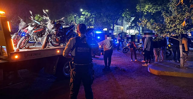 Morelia, Michoacán (MiMorelia.com).- La noche del viernes, oficiales de Policía Morelia intervinieron una rodada nocturna realizada por un grupo de motociclistas en la zona de Tres Puentes, luego de detectar conductas que ponían en riesgo a peatones y automovilistas.