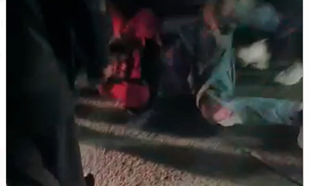 El visual muestra el momento en que aún los hombres patean y golpean al sujeto quien está en el suelo.