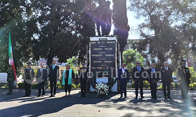 Por la mañana, el ayuntamiento moreliano realizó el izamiento de la Bandera Nacional en la Plaza Ocampo.