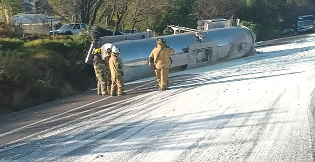 Morelia, Michoacán (MiMorelia.com).- La mañana de este sábado, elementos de Protección Civil Michoacán atendieron la volcadura de una pipa que transportaba aceite de palma sobre la carretera Morelia–Pátzcuaro, a la altura del kilómetro 8, en las inmediaciones del Motel Monarca, en la localidad de Cointzio. De acuerdo con el reporte preliminar, el accidente dejó un saldo de al menos cuatro personas lesionadas, quienes fueron canalizadas para recibir atención médica especializada.