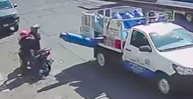 El hecho fue captado por una cámara de videovigilancia ubicada sobre la calle Lago de Chapala. En el video se observa cómo el cilindro cae al pavimento justo cuando el vehículo está en movimiento.