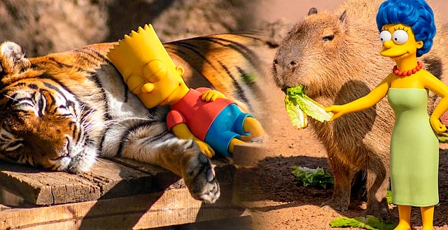 En las imágenes se observa a personajes como Homero, Bart y Marge “conviviendo” con especies del zoológico, en una dinámica que destaca por su creatividad y humor.