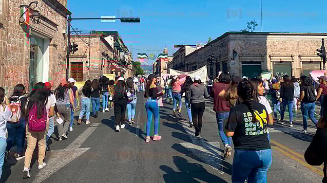Morelia, Michoacán (MiMorelia.com).- Cientos de estudiantes de la Universidad Michoacana de San Nicolás de Hidalgo (UMSNH), la Organización de Normales Oficiales del Estado de Michoacán (ONOEM), así como el Frente Nacional de Lucha por el Socialismo (FNLS) se manifestaron este domingo 2 de octubre en la ciudad de Morelia.