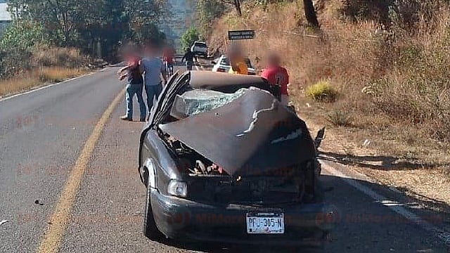 De acuerdo con fuentes de rescate y policiales, el accidente sucedió la tarde de este miércoles en el municipio de Uruapan. El auto siniestrado es un Nissan Tsuru, color negro, con placa PFJ305N.