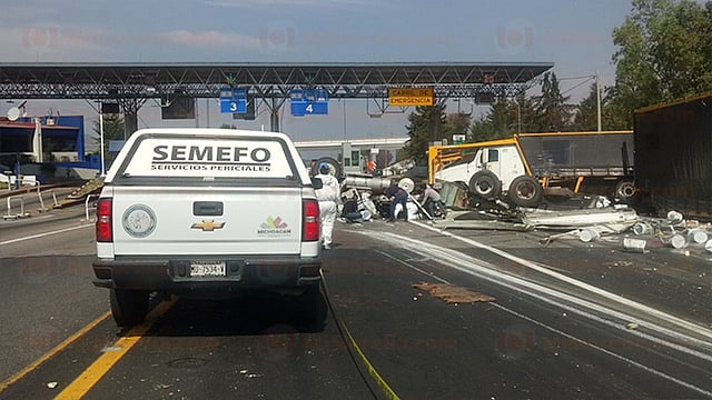 Zinapécuaro, Michoacán (Mimorelia.com/Red 113).- Sobre la Autopista de Occidente falleció un conductor cuando su camión volcó tras impactarse contra la retaguardia de un tráiler nodriza, percance que ocurrió en la caseta de Zinapécuaro, ubicada en el kilómetro 202+256.