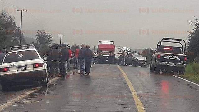 Uruapan, Michoacán (MiMorelia.com/RED 113).- Dos muertos e igual número de lesionados fue el saldo de un choque de frente entre una camioneta pick-up y un taxi de la línea "Monarca" en la carretera Uruapan-Paracho en esta demarcación, según los datos obtenidos por esta redacción.