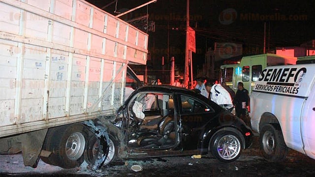 Morelia, Michoacán (MiMorelia.com/RED 113).- Tremenda colisión se registró la madrugada de este domingo sobre el Periférico Independencia, pues un auto compacto se estrelló contra una camioneta y a consecuencia de ello dos muchachos fallecieron, revelaron las autoridades en el lugar de los hechos.