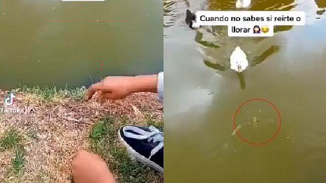 Morelia, Michoacán (MiMorelia.com).- Lo que parecía tener un final bueno terminó en tragedia, y es que un niño liberó una rana en el agua, pero el anfibio no duró ni un minuto en libertad.