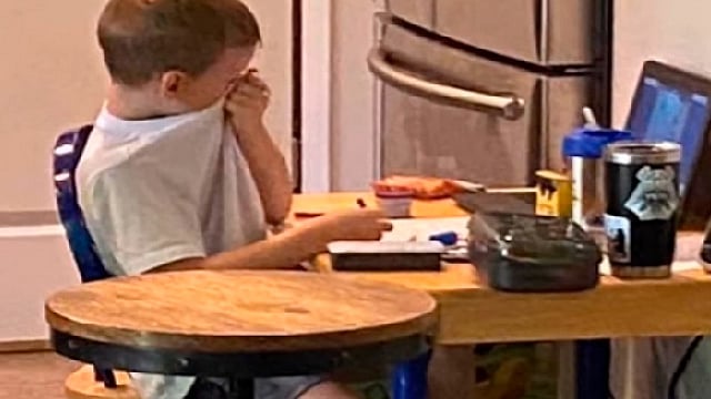 Tal es el caso de un niño de cinco años, quien fue captado por su madre, Jana Coombs, en medio del llanto en Georgia, Estados Unidos. Coombs decidió mostrar en sus redes sociales la foto de su hijo, mientras lloraba de desesperación por no comprender la clase virtual que estaba estudiando.
