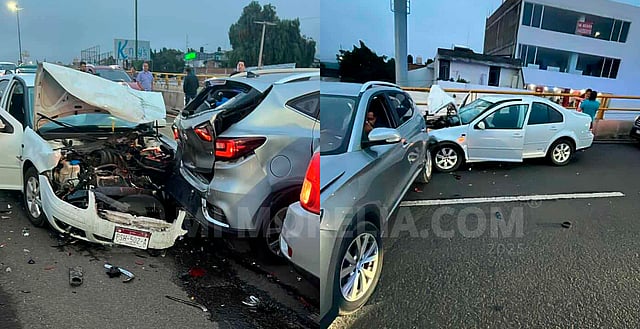 Morelia, Michoacán (MiMorelia.com).- Al menos cuatro automotores protagonizaron un aparatoso choque sobre un puente de la avenida Francisco I. Madero Poniente de Morelia, hecho que dejó dos heridos leves, daños materiales y bastante carga vehicular, indicaron fuentes allegadas al tema.
