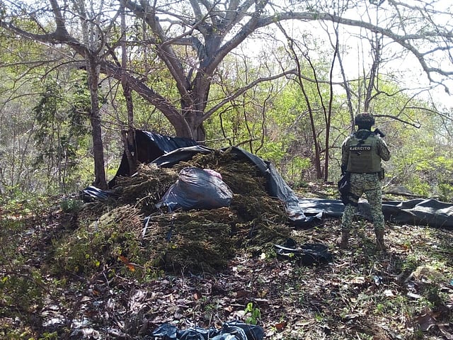 Durante el desarrollo de labores preventivas en la localidad de San Pedro Naranjestil de este municipio, los agentes de la Guardia Civil, el Ejército Mexicano y la FGR, encontraron el mencionado asentamiento en las inmediaciones de una zona serrana.