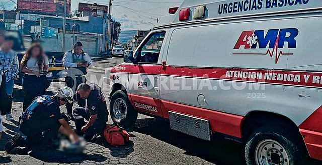 Morelia, Michoacán (MiMorelia.com).- Paramédicos de Atención Médica y Rescate (AMR) otorgaron los primeros auxilios a un joven motociclista que resultó lesionado tras ser impactado por un camioneta roja, esto sobre la avenida Madero Oriente de Morelia, trascendió en la labor periodística.