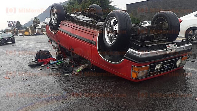 Uruapan, Michoacán (MiMorelia.com).- Cuatro personas lesionadas, entre ellas, una menor de edad, fue el resultado luego de que un automóvil impactara una camioneta la cual posteriormente se volcó y quedó sobre su toldo; el accidente se registró en la carretera de la salida a Paracho, poco antes de llegar a la Curva del Diablo.