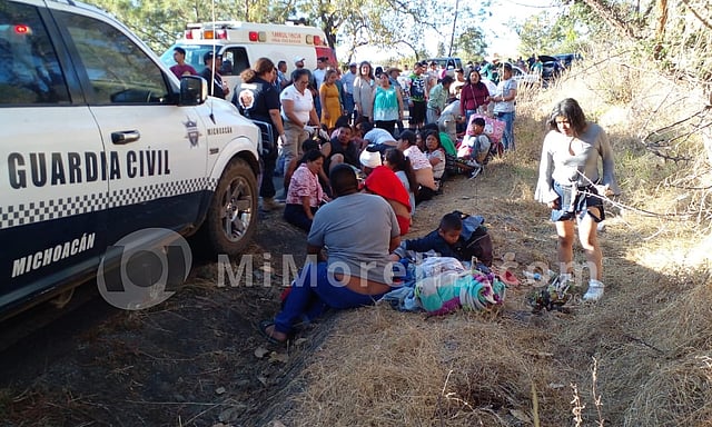 El accidente se registró la tarde de este domingo, cuando el conductor de un autobús de la línea Occidente, con placas 113718HR, salió del municipio de Carácuaro, donde los feligreses visitaron al milagroso Cristo Negro.